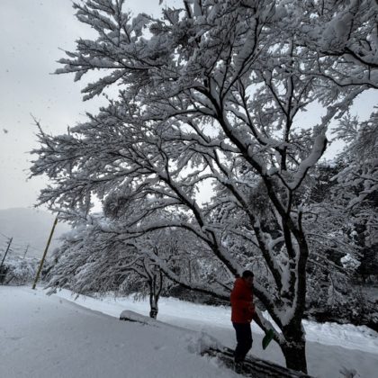 雪の中フォークリフト点検