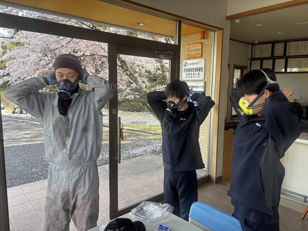 今日はマスクの装着方法を学び、塗装作業に挑戦しました。
