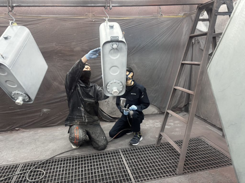 今回の作業は、工業用部品である タンク塗装。
